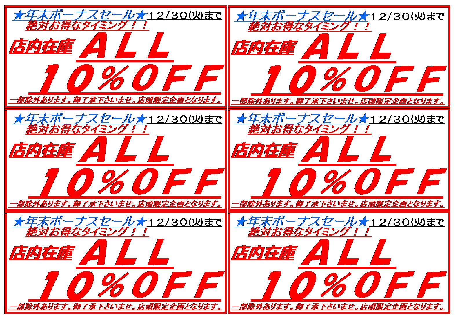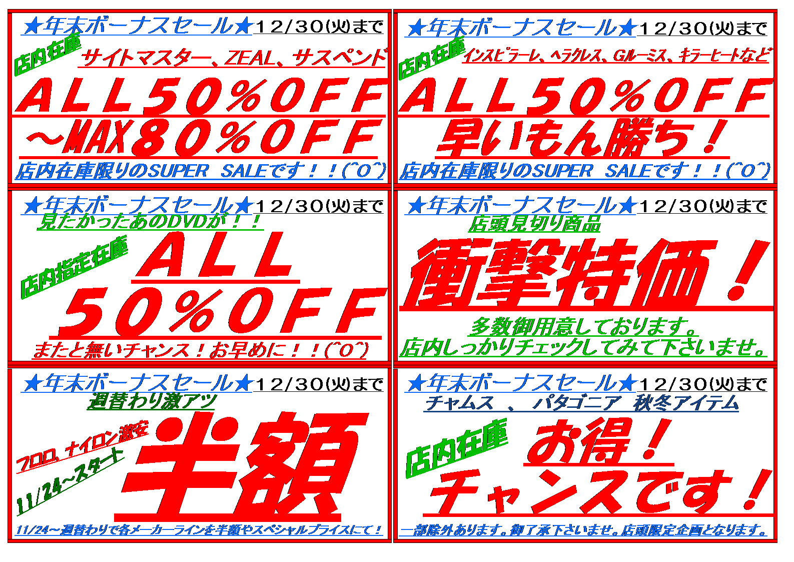 年末ボーナス店内在庫激安激特価イベント‼