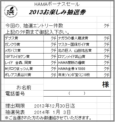 HAMA年末ボーナスセール‼』