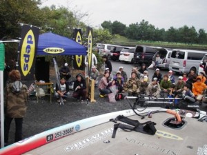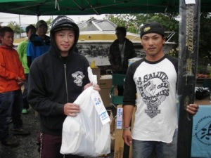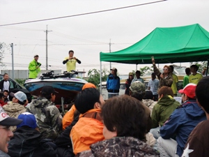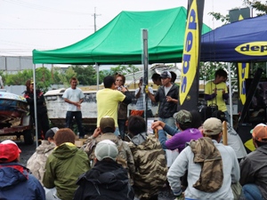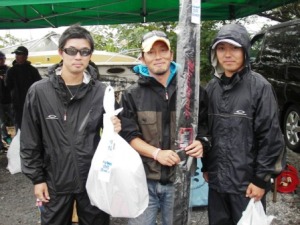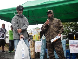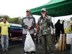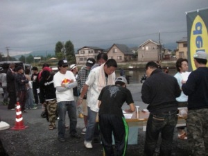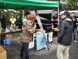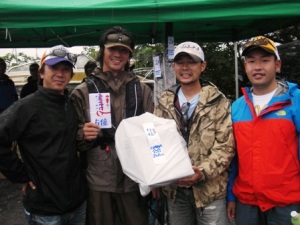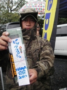 | 始まりました〜 HAMA釣り会合2010 セカンドステージ! with deps! HAMA釣り会合は大会というよりは、 「みんなで楽しくバス釣りしましょう〜!」っていうコンセプトで、 今年で10年目となりました! 過去には、琵琶湖湖北、三河湖や七色ダム、知多野池でも開催! ここ数年は南湖レークマリーナさんでお世話になっております! 何もナシじゃつまらないので、 キーパー40センチ以上!3本の合計ウエイトで、 順位を決めて、エントリー代を上位で山分けするシステムなんです(笑) 参加人数131名!ボート55艇がエントリー! 今回も沢山の皆さんに集まっていただきました! 楽しんで釣ってくださいね! ![]() 今回のスペシャルゲスト! デプス社長 奥村和正氏の合図とともにHAMA釣り会合スタート〜!! 今回はHAMA&depsということで!見にくいですが、社長奥村氏、キムケンもボートで レークマリーナさんまで湖上を走ってきていただきました。 MブロウまっつんはMブロウ&デプスのラッピング艇でゲスト参加! さらに!琵琶湖ガイド北川クン、長良ガイドで有名な藤波さん! 飛び入りで琵琶湖ガイドのミッキー!と豪華ゲスト参加の大会となりました! 参加の皆さんのスタートの後、ゲストの皆さんも釣りに行ってもらいました! 運営スタッフとして、お客様のMさん、Sさん、谷山商事Sクン、 デプスさんのスタッフの皆さんなどなどお手伝いしていただきました。 今回は私 店長も釣りには行かず、運営に専念させていただきました。 仮眠とったり、朝飯食べたり、 みんなで鮎屋に行ったり(笑)、 釣り具さん行ったり、のんびり気分で帰着待ち〜! これはこれでまったりとして楽しかったです。 手伝いもあるのでっと、45分ほど早く まっつん&ミッキーが上がってきました! 一番乗りで参考検量!1本は55センチほどありました!! みなさん釣れたんでしょうか〜?! ![]() ![]() 1時30分、帰着時間となり続々と皆さん帰ってきました!いよいよ検量スタート! さぁ〜!! それではウエイインされた皆さんの写真です! ぶっちゃけキビシイ日だったようです。 ただウエイインされた中で、60UPが3本出ました! (最大は63センチ、以下62センチ、61センチの3本!) もちろん、ウエイト勝負なので長さは関係ありませんが、 デカイのが単発で釣れてた感じで、この日は3本リミットそろえることが 大変だったようです。 HAMA会合はキーパー40センチなので余計に難しいんですが(笑)。 ちなみに40センチ以下は結構釣れておりました。 集計後はいよいよ表彰式です! 今回もデカギル賞やレディース賞(参加女性の方にはもれなく!)、 キッズ賞をご用意(キッズ賞ももちろんエントリーしてくれたみんなに!) 小さなお子さんは会合最多の6人でした! みんな有難うねぇ〜!! いよいよ上位6位の発表! 第6位 高井さん&都築さんチーム 3830g! 第5位 深谷さん&竹木さん&青山さんチーム 3900g! (長良ガイド藤波さんと一緒に) 第4位 古橋さん&水野さん&清水さんチーム 3950g! 第3位 日高さん&石井さんチーム 4060g! 第2位 倉谷さん&清水さんチーム 4230g! そして!優勝は!永田さん&近藤さんチーム!!5170g!!! 昔からのお客様でもある永田クンチームが優勝! しかもビッグフィッシュ賞も文句なしのブッチギリ! 63センチ!5170g! 5kgオーバー1本で優勝!!しかも釣ったのはデプス スライドスイマー250!! いくらデプスさんとのコラボ会合とは言え、出来すぎでしょ〜(笑) 湖東取水塔だったそうです。おめでとうございましたぁ〜!! 正真正銘 チャンプだね〜(笑) 表彰式の後は定番ですが! 参加者全員にくじ引き参加賞大会!! ![]() ![]() 今回もレークマリーナさんからお米5g袋を沢山いただきました! 各メーカーさんからの協賛品、当店からのプレゼントも盛り沢山! ルアーやワームはもちろん、アパレル商品やビール、キャンプ用品などなど色々です! さらにゲストのキムケンからは、まだこの時は未発売のキムケンフロッグDVDのプレゼントがっ! さらに、ゲストのMブロウまっつんからはまっつんオリジナル! スイミングラバージグ「マツラバ」をプレゼント! ![]() ![]() ちなみにまっつん&ミッキーチームは参考ながら5位の成績でした。 他のゲストのみなさんは魚見てません(笑) まぁ〜モンスタークラス以外は持ち込まないと思ってましたが。 いつもですと、ここで終了〜! ですが、 デプスさんのご厚意により! ここからはデプス商品争奪ジャンケン大会となりました! デスアダースティック、スパイラルミノー、コリガン、 スリザーク、そして新製品!パルスコッド!などなど!! 奥村さんとじゃんけん〜! っで盛り上がらないワケないです!! ついに!サイドワインダー「ソリッドセッター」も賞品出ました〜! ![]() 物凄い死闘の末、サイドワインダーゲット!! おめでとうございました! ![]() 太っ腹なデプスさんありがとうございました〜(笑) そして今回は新製品の展示もしていただきました! ![]() さらに!今回のHAMA会合の特典として、未発売だったデプスポッパー 「パルスコッド」も希望参加者の方に先行ご予約券をお配りしました! 後日、発売日に引き換えで購入してい