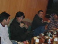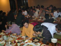 | 2004年1月4日の午後7時より某居酒屋さんで、表彰式を行いました。 参加者の皆様とそのご家族の方々や日頃お世話になっています伊豫部君とフラッシュポイントの 長谷川君とボートシーバスの小池さん、加藤君、溝口くんにもご参加頂き、 楽しい時間を過ごすことが出来ました(^^) 嬉しい事に去年よりも参加人数が増え、総勢50名強の釣りバカが揃い(笑)、 アッと言う間の2時間でした! |