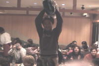 | なんだかんだで、表彰式です。ところが何と、カメラマンを頼んだ方が不慣れだったのか酔っ払っていたのか? 写真がすべてボケていました(汗) 急きょ、ビデオから写真をひろいましたので画質は悪いです!ごめんなさい!! |