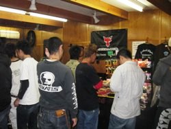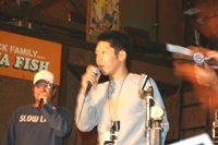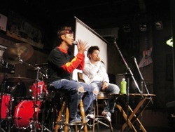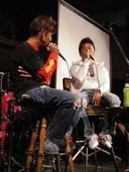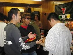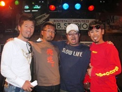 ![]() ![]() ![]() 高橋氏のブランドsense of wildさんのブースですっ 最近特に人気です・・・かなり格好いい商品が多いですヨ カモ柄のパンツは2週間で完売とのこと。狙ったら早めにgetしといて下さい! ダウンジャケットも大人気でしたっ!当日用意したダウンジャケットは、即完売してましたっ。 12月には当店にも入荷する予定!!です。 ![]() ![]() ![]() フード&ドリンクコーナーJBさんにはいつもお世話になってます。 バンドリハーサル中〜 ロジャー今日もヨロシク! ![]() ![]() ![]() 今回はMCタカー復活で、スタート前からの飲酒で緊張まぎらわすっ(ハイッハイッハイハイハイ!)微妙に古い? ダウザー俺達こと秦氏と一緒に進行します〜!「バイブレーションっ」でテンション↑有難うございました! イヨケンに聞いてはいたけど、ダウザーのナイスなハイテンション!!に助けてもらいましたぁ〜! ![]() 控え室にて!恒例の3ショット・・・のはずが、ハタタクはMC中でしたっ! 出展メーカーさんのごあいさつ。からスタート! ![]() ジャッカルのN氏。楽しい方ですが、やんちゃな二人をまとめなきゃってことで、締めるトコは締めてますっ。 ![]() 10FtUのご紹介ではMくんが、当日イヨケンからの突然の依頼にもスマートにしゃべってましたっ 最近はほぼ毎週ルアニューにのっています。将来有望な若手くんですっ ![]() sense of wildの広報の方ですっ。モデルも務めてます。かなりしっかりしたセールストークにアバウトな自分を反省っ。 ![]() トリはメガバス社のI氏。オリカラでは大変お世話になりました(深々)I氏のおかげでいいものができましたっ ![]() ![]() ![]() まずは高橋氏のトークから。地元ネタや冬の野池攻略など! ソルト佐久間氏も飛び入りで、よい話が聞けましたっ〜!有り難うございましたぁ〜! ![]() ![]() ![]() 次はイヨケン&ハタタクのトーク。55周年のお花を頂き有難うございました! プリシャを持って店に訪問に来たことが初めてのイヨケンとの出会いです。 公私ともにこれからもヨロシクです!ハタタクとのコラボトーク(漫才)もありで充実な内容でしたっ(笑) ![]() ![]() ジャッカル社から全員にワーム(トーク中に話題になったバイーン用のフリックシェイク6.8インチ)のプレゼントが・・! 主催者もビックリの太っ腹で有難うございましたっ! ![]() 地元愛知のインディズバンド「ロジャー」の演奏!今回はこのイベントの為に作詞作曲してくれた、 「HAMAのテーマソング」をひっさげて来てくれましたっ! 今回もバッチリ盛り上げてくれました!! バス釣り大好きバンドなんで、どこかで見かけたら「みんな大好きっ」と掛け声掛けてください。 きっと「バスフィッシング〜!」と答えてくれます(笑) ![]() ![]() ![]() ![]() ![]() ![]() ![]() 高橋氏&イヨケンのコラボトーク。 前回の村上氏&奥村氏とのコラボとはまた一味違った雰囲気でいいです。 前半はまじめだったのですが、後半はダウザー乱入でまたまた「ぶっちゃけトーク」で楽しかった! ![]() ![]() ![]() ![]() 「俺達」パロって「浜達」アリガト〜!ビール飲みすぎっ! 裏のMCタカー(暗っ) いつも参加有り難うございますっ ![]() ![]() ![]() 各メーカーブースには人だかりがっ! 5時間のイベントでも、いつも時間が足りないんですよね・・・ ![]() ![]() ![]() 今回はみなさんがストレスなく過ごせるように100名定員にしましたっ。満員御礼で有り難うございます!! ![]() ![]() ![]() みんな大好きっ!!ジャンケン大会♪のスタート!! 高橋君がホンマ気前良くって・・・男前ッス!伊豫部君&ハタ君、各メーカーさん、ホントに有り難うございました!! 最後は、メガバス社からなんと!ロッドが出ました〜! 新企画!「お宝GET de 早食い競争!」ってことで、 うまい棒6本&コーラ500mlを、ジャンケンで勝ったゲスト3名とパフォーマー3人でVS早食いっ競争!! 高橋君とダウザーは幼少の頃、コーラ早飲みで町内1位の実力!だったらしい・・・・・・。 ![]() ![]() 参加者全員、うまい棒のカスだらけになりながら(笑)、 秦氏と競り合ったお客様のM氏が見事勝利〜!!(パチパチパチ)) 本気モード全開!マジで早かった〜!! イヨケンだけ美味しそうに味わってましたっ(笑) 高橋氏からメガバスロッドをプレゼント!! おめでとうございます〜 ![]() ![]() 最後はロジャーの演奏のなか、4人からみなさんにお礼のごあいさつ! ![]() お疲れ様&有難うございました!全員はカメラに収まらん・・・ごめんなさいっっ 集合写真欲しい方はHAMAスタッフまでお願いします。 写真右はロジャーの「みんな〜だいすき〜!」「バスフィッシング〜!!」の掛け声とともに! ご参加下さった100名の皆様、ご尽力頂きましたジャッカル様、sense of wild様、 10FEETUNDER様、メガバス様、JBスタジオの皆様、 お手伝いしてくださったMさん、Yさん、片づけを手伝ってくれた皆さま そして高橋くん、伊豫部くん、秦くん本当に有難うございました!! 来年からは年1ペースで開催できればと思っています! ご協力いただけますメーカーさま、名乗りをあげてください(笑) それでは、浜話よろしければまた覗いてみ