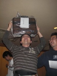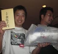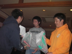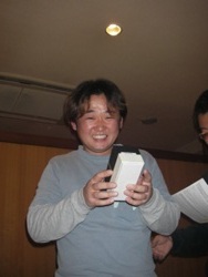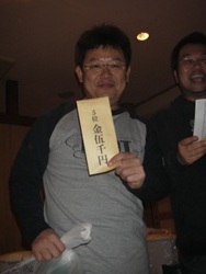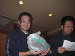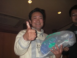 | 宴もたけなわでございますが、時間も迫っていますので表彰式に。 今年は2匹長寸のサイズ合計を順位ごとにポイント化し、更にボーナスポイントも新設。 年2回の釣り大会参加頂くと5pt、上位入賞で10pt、外道の持ち込みで5pt×2てな具合です! 例えば、1位のAくんは40ptで16位のBくんは25ptなのですが 釣り大会で上位入賞すると合計で15pt加算されるので1位のAくんと同ポイントとなる訳です! ただし、前半戦と後半戦で集計するので釣り大会も2回あります。 2回とも上位に食い込むのは至難の業ですが、2匹のサイズのみの順位よりも複雑化され 皆さんに「更に」上位になれる可能性が広がったように思います。 しかし、フタをあけてみないと予想のつかないことも多いので このボーナスポイントがどのような影響を及ぼすのか、どのように結果に反映するのかということが 気がかりでした。 参加人数68名で、持込率は以下の結果となりました。 前半 琵琶湖・ダム湖部門 53% 野池・河川部門 41% 後半 琵琶湖・ダム湖部門 44% 野池・河川部門 41% 持込み数が半分ということあり、ポイント数の差の幅が少なく、その中ではやはり 5〜30ポイントのボーナス加算のウエイトは高かったようです。 今回の表彰式&新年会での席では、上位の方々は「BIG BASSを釣る秘訣は?」という問いに 冗談半分で「釣れるまで帰らない」「釣れるまで行く」などという回答が飛び出し、 笑いの中「間違いない!」というヤジも飛んでいました。 しかし、これも半分は本当のことで、毎年感じることですが常に丁寧にポイントを探り、 信じるフィールドに精力的に通い、更に粘り強く魚と対面されている方々の結果なのだ と思います。 しかし、様々な事情で週に1度も釣りにいけない、オカッパリしかできない等々、 制限された条件の中で釣りを楽しまれている方も少なくありません。 このような中で魚のサイズのみでの結果でなく、ボーナスポイントでの加算で、 誰もが1位になれる「可能性」が更に広がるこの方法は有意義な方法の1つではないかと 感じましたが、実際エントリーしてくださった皆様はどうでしょうか? 外道賞 河辺氏 「何とアマゴでアユを釣る!」(笑)アマゴはラッキークラフト社のアマゴでした・・・ トップウォーター賞 山下氏 すべてTOPオンリーでエントリー! BIGフィッシュ賞のお二人!琵琶湖」ダム湖部門は杉山氏の63cm、野池河川部門は浅井氏の58cm 飛び賞のお二人!1/6だったので16位と2007年で27位の方ですっ ビンゴ景品!例年より豪華ですっ オクサマ喜ぶキッチン商品などがっ |