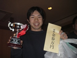 5位の八木君 毎年ありがとうっ 4位の浅井君 初参戦で入賞おめでとうっ 3位の平賀さん 両部門で入賞おめでとうございます!「すっごい嬉しい!ありがとう!」と逆にお礼を言われてしまいましたf(^^; 2位の山下君 トップオンリーで相変わらずおっとこまえ発揮!毎年ありがとう〜 優勝のマスラヲさん 初参戦で優勝とは!野池のエキスパートですな。おめでとうございますっ |