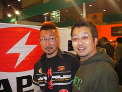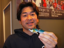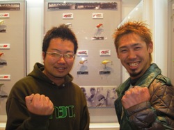 | 毎年恒例のフィッシングショー大阪に行って来ました! 今回は業者日の金曜日にNEWスタッフのなっとう君こと小笠原君とっ! (ナゼ「なっとう君」かは後日・・・) 朝は伊賀上野で、雪の影響で大渋滞! 5時間もかかりましたぁ〜。 去年も雪に降られた記憶が!何か毎年降るんですよね〜。 今年は暖冬だから、ノーマークだったのに・・・・・。 11時過ぎに会場に到着しましたっ。 毎度おなじみのインセブントブース! NEWカマー なっとう君小笠原君!みなさんヨロシクです。 今回はデプスブースの中にありましたっ。 H方さん今年もヨロシクですぅ〜。ブラックフライでてなかったのは淋しかったです。 フィッシュアローでは、ジャーキー松本さんが力説してくれました。 手に持ってるのは、新製品プロト ジャンピングジャック! 飛び跳ねるアクションだそうです。欲しい・・・・。 他にも、ウッド製虫ルアーや今年一押しフロッグのカバージャックなどっ! 兄弟?! よく言われる(笑)タク石黒くんと! ジークラックブースにて。 長浜よく釣れてるとのことです! 今年も大注目!デプスさん! リアルギルカラー イイ感じですぅ 昨年、当店のイベントでもお世話になった奥村さんとっ! 顔ちっちゃいなぁ〜。 こちらも人気のエバグリブース! サポートプロの私用タックルの展示 今年の新製品!ロイヤルフラッシュや今年のフロッグなどなど! カエルの奥に見えるジャークミノーも今年の流行ですねぇ〜。 今年もカッコイイブースのガンクラフトさん! ガンクラサポートの湖北ガイド長谷川くんや デプスまっつん、ジャッカルナカジーさんと! 毎年豪華なメガバスブース! 新製品も続々でます!ウルトラのちっさいヤツは野池にベストサイズ! ツネキチブースで、これまたお世話になっている村上氏と! 一緒に琵琶湖の浜、行きましょう!と言われたので、叩きのめされるのでイヤです(笑)って 言っときましたっ。 こちらも人気のジャッカルブース! 今年も水槽は健在!! 持ち運びも以前に比べて、大変みたいですねぇ ハタタックン発見!! 相変わらずオチャメなお方です! 新製品のジャッカルルアー! 時の人イヨケン!(笑) 今年もバンバンでそうですねっ! 今年のフィッシングショーは大忙しだそうですっ! ティムコさんブース! ティムコと言えば、エニグマ&アクアプロジェクトMリグロッド! チヌ師匠 嶋田さんと!なぜかまっつん乱入! 「嶋田さん、Sリグシンカーありがとうございます!」 そんなこんなであっという間に時間が過ぎて行きました・・・ 毎年いろんな人と会えるのが楽しみなんですよねぇ! 一度1泊くらいしてのんびりと見学してみたいものですっ それでは、また浜話次回をお楽しみに〜 2007.02.09 taka |