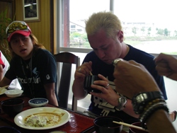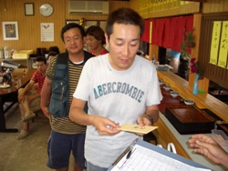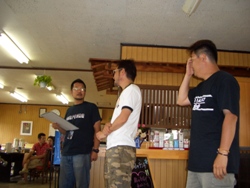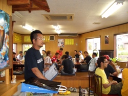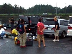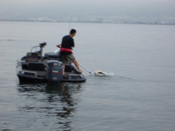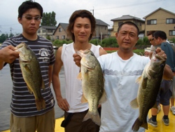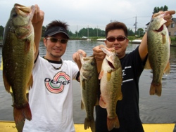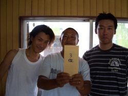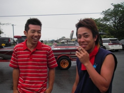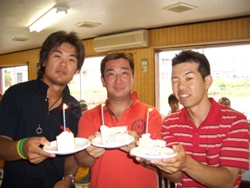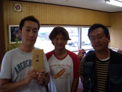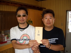 | 7/22(日)、南湖にてHAMA釣り会合行いましたっ! 毎年、当店主催の釣り大会をしてますが、今年はもっと楽しみましょう〜。 ってな感じで、 釣り会合という形式にしました〜。 とは言え、 何もナシだとつまらないので、 一応、 キーパー40upの3本ウェイトのボート戦形式にっ! 朝の模様〜 みんなワイワイしゃべくりまくってますっ(笑) 楽しく、釣れるといいなぁ〜。 出発!出発!出発! とりあえず、みんなで釣りするだけで、楽しい〜ッス! 今回は参加40名 マイボートさん含め、 15艇ですぅ 3号水路沖で集合! 順番にスタート! みんなで楽しく、遊びましょう〜!! 帰着はPM1:00! トッパーの人や普段は野池しか行かない人、 オカッパリ限定の人などなどっ。 それぞれの好きな釣りをしてもらいました〜 さっそく、 R本柱で景気良くロッドが曲がってる人がっ! お〜!Nさん!! バッチリ、釣ってますねェ〜 途中、数艇まとまって釣ったり、 「こっちええよ〜」っと ニセ情報流したり、 和気あいあいと釣りを楽しみました。 そんなこんなで、 午後1時ウエインですぅ〜 ぶっちゃけキツかったです。 それでも、ニセ情報に惑わされず(笑)、 きっちり釣ってきた人達です。 M&MさんのS機ペアー ストロングに開眼したTさん&Nさん さすが、しっかり釣ってられました〜! ばっちり釣っちゃってますねぇ Tさん軍団もさすがです! ギュンギュン釣っちゃってたKさん&Nさん Tさん顔コワいッス。(笑) 最強コンビですね〜 私と同船のトッパーYさん サウザーSさんは前日、 Tくんはいつもは知多野池メイン 50up仕留めてくれました! 60up釣ってたのに・・。 しっかり40up持込みです! Kさんのビッグフィッシュは ビリーズバンちゃんはバズジェットと Bカスタムにて! サイレントキラーで! 毎年参加していただいてるご意見番(笑) お〜じ〜3人衆は仲良く撃沈♪ オカッパリなら100%優勝でしょう! そんなこんなで検量も終わり、 きっちんれーくさんにて、お食事&結果発表〜! 貸切にしていただきましたっ。 日替わりランチ680円也!安くて美味しい! 謎のカタール人からあげを喰らう(笑) Aくんも仕事休んで来てくれましたっ。 そうそう、写真撮影や運営もろもろお手伝いしてもらったNさん&Tさん ホント助かりましたぁ〜 有り難うございましたっ 7/22当日、 お誕生日だったM氏とS氏おめでとうございますっ。 サプライズ?!で、 3日前誕生日だった、 元STAFF小川君も一緒にケーキでおいわい♪ いよいよ結果発表ですぅ〜! 3位はレークさんに駐艇しているTさんとお仲間のH&Hさん! 必殺のセンコーで揃えてくれましたぁ 2位はTさん&Nさん&Yくん ハネラバ&バイブ&スプリットで揃えてくれましたぁ〜 Tさんボクにもハネハネ教えてください・・・。 優勝は、Nさん&Kさん! 朝一に3本揃えて、途中にBカスタムで入れ替え成功! 3本合計5500g! 「釣り大会」ではなく「釣り会合」 という事で、 みんなでワイワイ楽しめましたっ!・・・私は!(笑) ご参加の皆様はどうでしたか? 参加者全員で〜パチリ! 今回、大変お世話になったレークマリーナさんっ 有り難うございましたぁ 何時行っても、アットホームで素晴らしいマリーナです。 参加していただいた皆さん! お疲れ様でしたっ! また、遊んでくださいねぇ〜!! それではまた、よろしければ覗いて見てくださいっ 2007.07.29 taka |