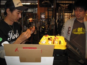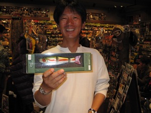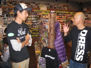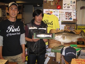 今回の「この人、来ます!」は、 ロマンメイド代表武山氏&栗田氏!! ![]() 栗田 学氏が昨年 琵琶湖レコードとなるモンスターバスを ロマンメイドルアー「マザー」で釣り上げたのは あまりにも有名です! お2人のコアな話を直接聞ける! 貴重な時間と! ![]() ![]() このメッセージを引っさげて! 「マザー」「ネゴシエーター」「ロマントリック」の即売会! 「オリジナルCAP」や「ロマンメイドステッカー」「ロマンメイドTシャツ」 などなど! ロマンメイド商品満載でスタート!! ![]() PM2:00販売開始ですが、開始前からビッグベイターのお客様の人・人・人!! いや〜スゴイ熱気です!! ![]() ![]() 当日は関東や関西からもお客様がご来店! 遠い所、本当に有難うございます!!! ![]() 栗田クンもこの日の為に、いつも使ってるタックルを持ってきてくれましたっ! ルアーもリールもボロボロです(笑) 一匹のデカバスを釣るのに、一週間ずっと琵琶湖なんてザラな人なんです。 モンスターバスへの情熱はハンパねぇ〜人なんです。 やっぱ!栗田クンはスゲー人なんです。 さらに! ![]() 昨年の琵琶湖レコードバスの剥製も展示! ご協力いただいた、ルアーショップ アンドウさん有難うございました! 当日、皆さんかなりの注目でした〜 まじかで見るとやっぱりスゴイ迫力! あらためて!こんなん釣れるんですね〜(笑) ![]() ![]() 展示用のマザーも丸呑み! こんな感じで喰ってきたそうですよ!やっぱりバスってスゴイ〜!! マザーが普通のルアーに見えちゃいます! さらに今回の目玉企画!! ![]() 当日限定!ロマンメイドガラガラくじ〜!! ¥1000ごとにガラガラくじができます〜! ![]() 賞品も超豪華なんです!! マザーやネゴシエーター、ロマントリックの他、 ステッカーやCAP、Tシャツも当たる!当たる! ガラガラくじで賞品GETのお客様! ![]() ![]() おめでとうございます!!! ガラガラくじ開始30分〜! ガラガラガラ〜「ポトッ」コロコロコロ〜! ![]() お〜!!出ましたっっ!! 特賞のHAMAオリジナルカラーのマザー!! GETのお客様!武山さんと記念撮影〜 おめでとうございました! ![]() ![]() 今回はセミナーではなく時間いっぱい、個々に深い話をしてもらいましたっ 琵琶湖のナナマルの住み家が〜〜!や、バスの向きや目線が〜〜!! 10日間同じ魚狙って〜〜!!潜ってみたらナナがいっぱい〜〜!!などなど みんな変態(笑)な会話が飛び交ってました! ![]() ![]() さらに!当日限定でマザーお買い上げでロマンメイドTシャツプレゼント! 沢山の方にマザーも買っていただきました!! ![]() 栗田クンの私物!水辺の守り神だそうです。 ボートにいつも乗っけているそうです。 私も欲しいです・・・・。 ![]() いつもお世話になってるお客様も遊びに来てくれました〜 ![]() ![]() お客様との話は尽きず、 夜の7:00頃まで2人には居てもらいました! ロマンメイド! まさにロマンを追い求めるお2人! バスに対する追求心やこだわりはやっぱり変態(笑)です。 お2人の謙虚な姿勢と情熱! そんなロマンメイドさんが私も大好きです! ![]() 武山さん!栗田クン!ロマンメイドスタッフのみなさん! そしてご来店いただいたお客様! 有難うございました〜!お疲れ様でした!!! 2009.11 |